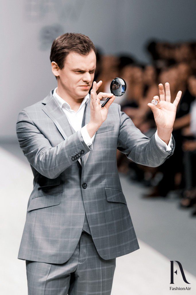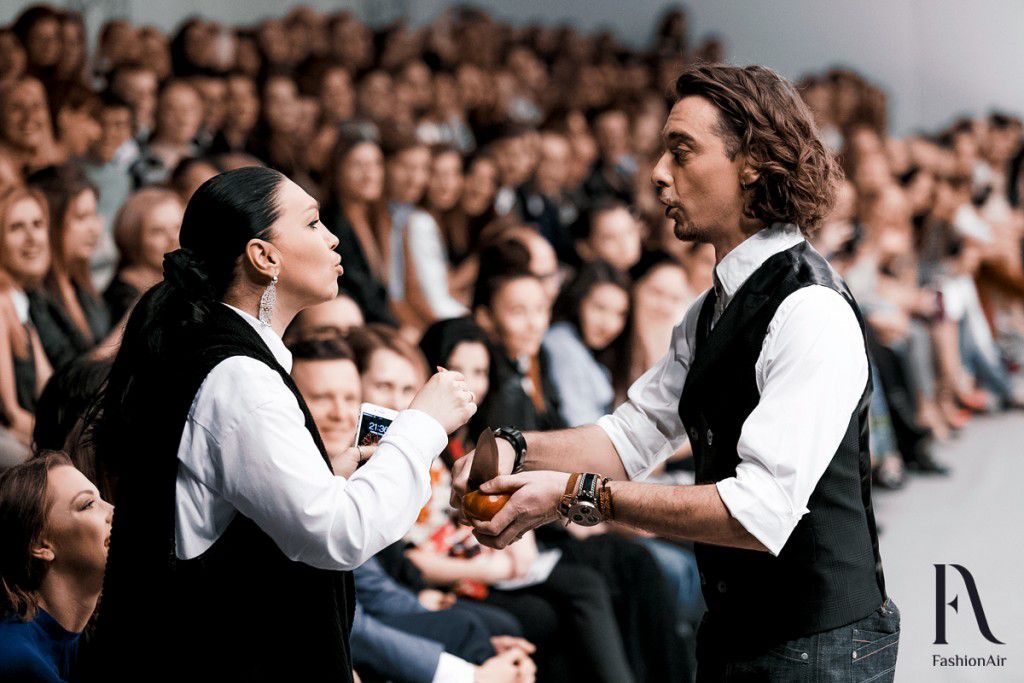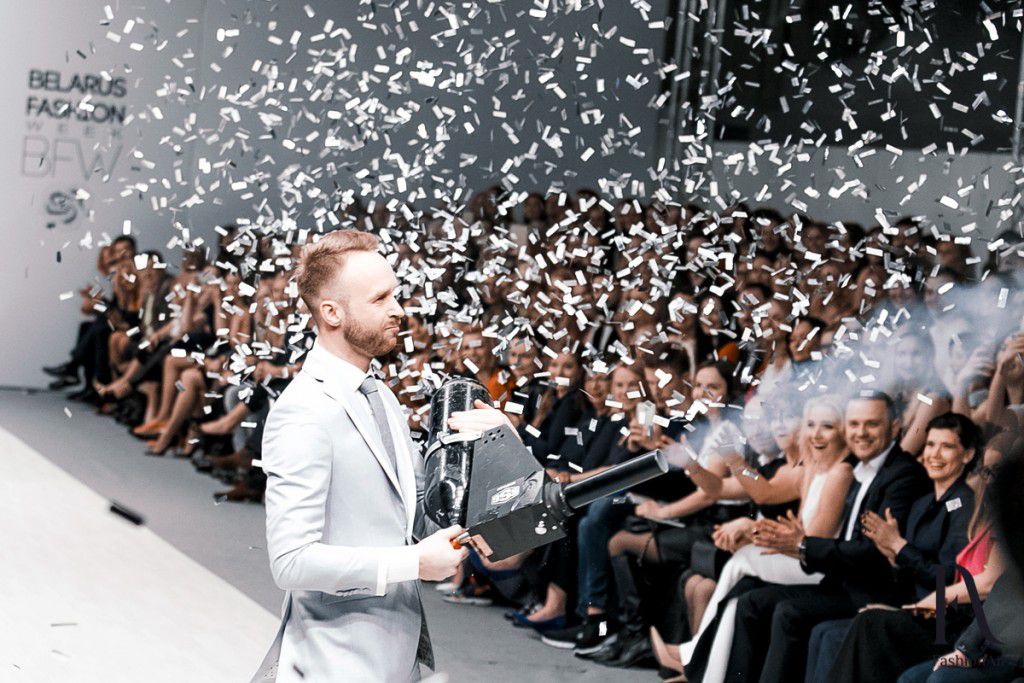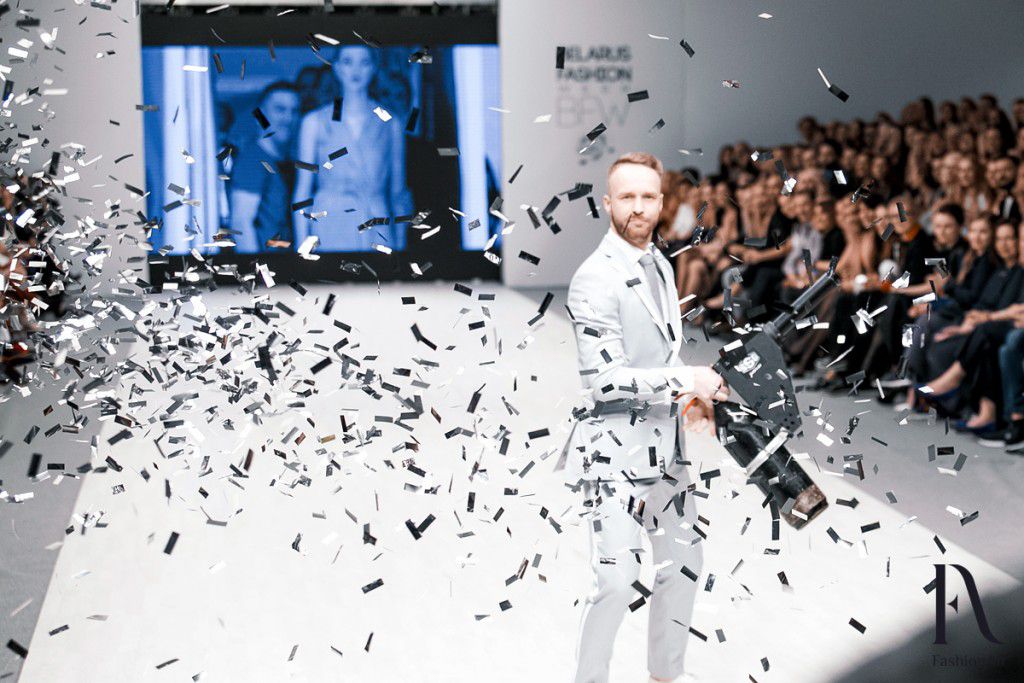 Стоит ли говорить о том, сколько гостей пришли посмотреть на первую самостоятельную, после ухода с Элемы, коллекцию Ивана Айплатова. Свободных мест не было и, более того, все проходы павильона были заполнены. Дизайнеру удалось сделать поистине зрелищное шоу, пригласив первых лиц белорусских телеканалов, а также других медийных персон.