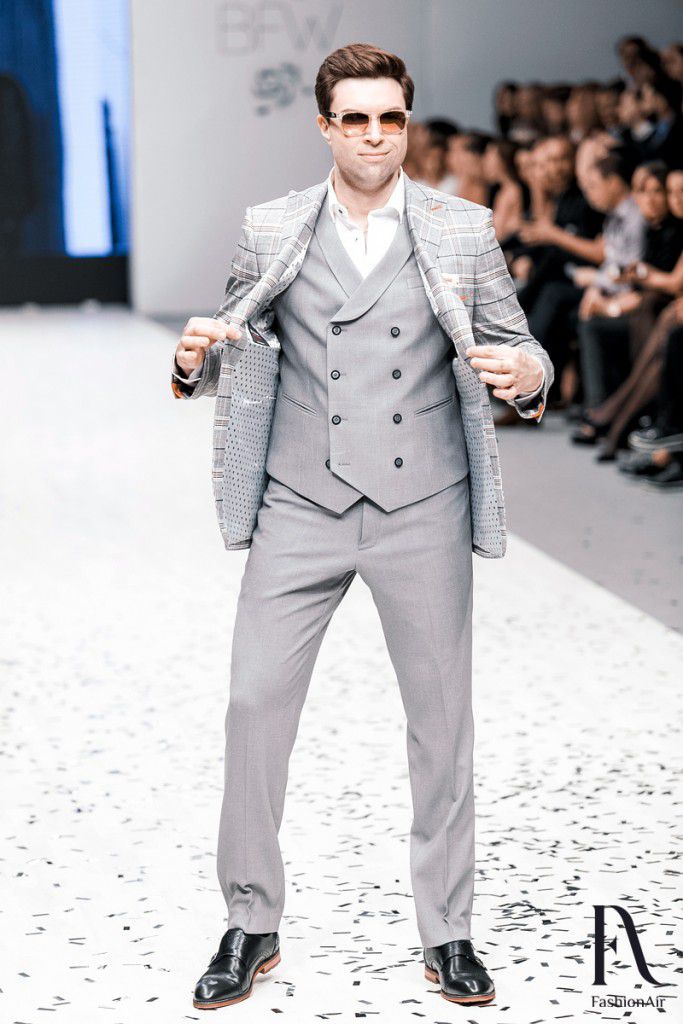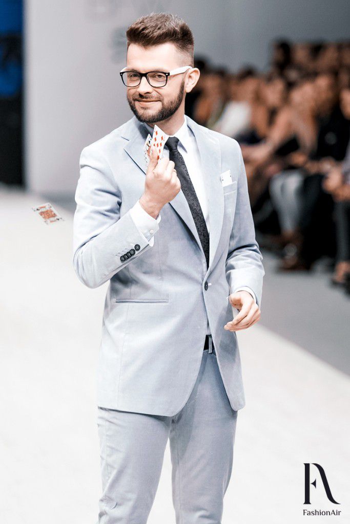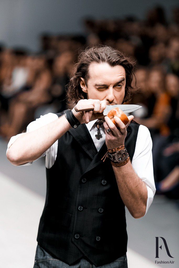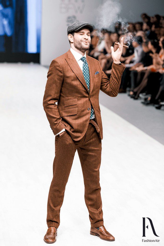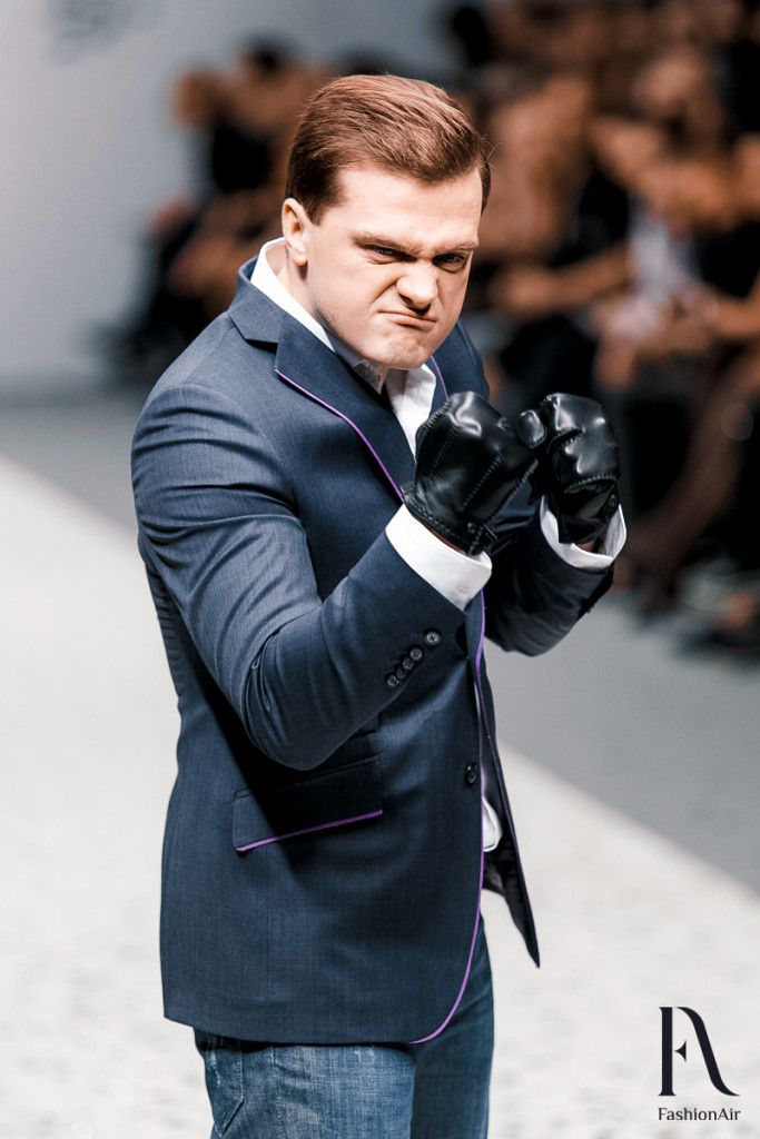 Показ начался сценой из гангстерского боевика шестидесятых. В полной темноте на подиуме появился силуэт, и только спичка, от которой неизвестный прикуривал сигару, была единственным источником света. Позже оказалось, что инкогнито был Дмитрий Кохно, а потом и другие ведущие продефилировали в костюмах от Айплатова. Среди них был Антон Мартыненко, Виталий Воднев, Глеб Давыдов, Денис Дудинский, Денис Курьян, Артем Астровлян, Дмитрий Дмитриев и Павел Костевич.