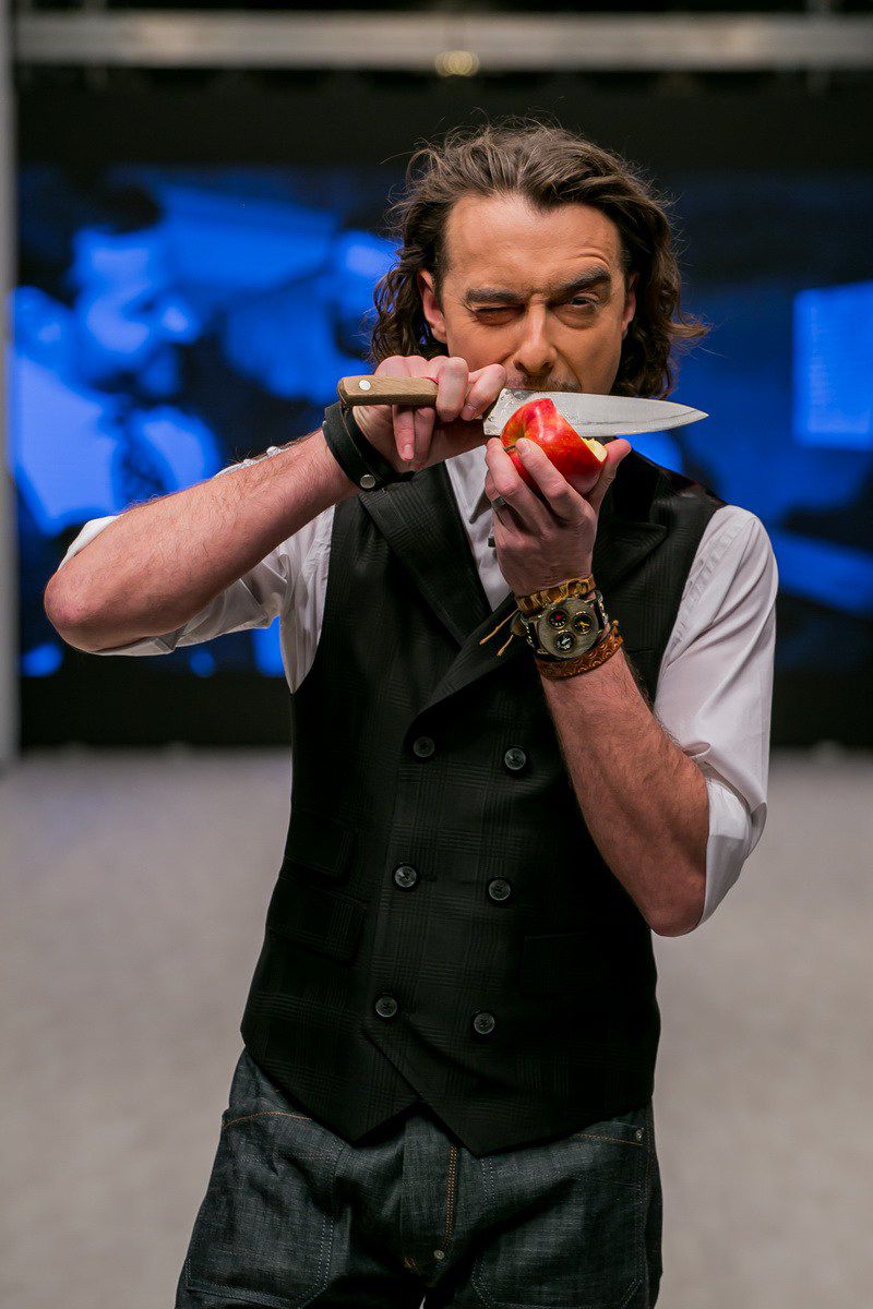 Каждый из десяти шоуменов был в своем образе. Например, Виталий Воднев вышел с колодой карт и эффектно их разбросал перед камерами, Денис Дудинский ел яблоко с ножа и даже угостил им свою напарницу по ТВ Светлану Боровскую, Артем Астровлян неожиданно для всех начал выстреливать конфетти из огромного не опознанного нами аппарата. А ведущий Антон Мартыненко продефилировал по подиуму с английским бульдогом.