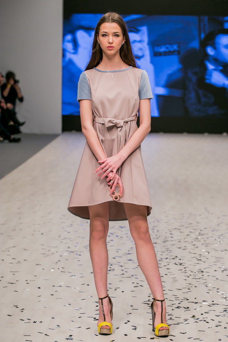 Между “звездными” выходами мы наблюдали и девушек-моделей в образах кэжуал, коктейльных платьях и даже в офисной классике – юбке-карандаш и белой блузке. Некоторые их образы были дополнены розовыми кастетами, также кастеты, в виде нашивок или аппликаций, присутствовали на одном из платьев и на рубашке.